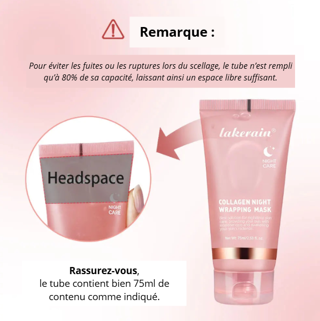 Transformez votre peau pendant votre sommeil ! Ce masque riche en collagène hydrate, lisse et repulpe la peau pour un teint frais et éclatant au réveil. Sa texture légère et fondante rend l’application simple et agréable, idéale pour toutes les peaux.